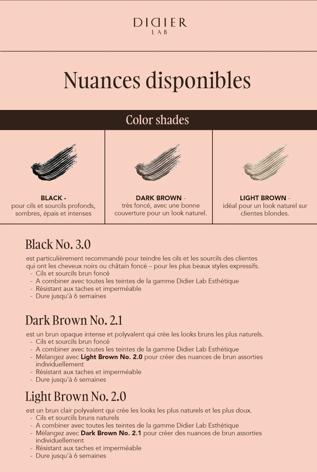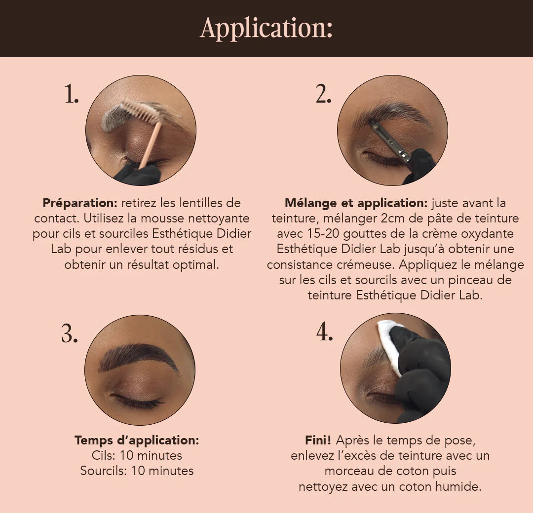 ATTENTION : La teinture pour les cils et sourcils est à mélanger avec l'oxydant ESTHÉTIQUE OXIDANT 3% DIDIER LAB !