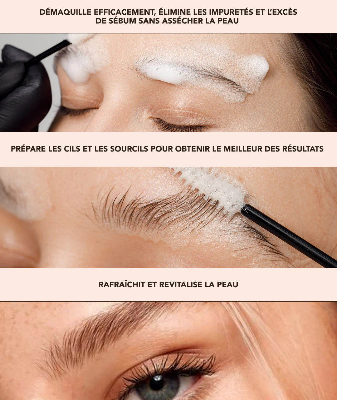 La mousse nettoyante pour sourcils et cils est une étape essentielle dans la préparation de tout traitement des sourcils ou des cils. Sa formule nourrissante, enrichie d'acides aminés, d'aloe vera, de panthénol et d'allantoïne, élimine efficacement le maquillage, les impuretés et l'excès de sébum de la peau. Cette mousse douce laisse la peau rafraîchie sans la dessécher et prépare les cils et les sourcils à un résultat optimal. Sa texture douce et apaisante la rend facile à utiliser et laisse à la peau une sensation de fraîcheur et de revitalisation.