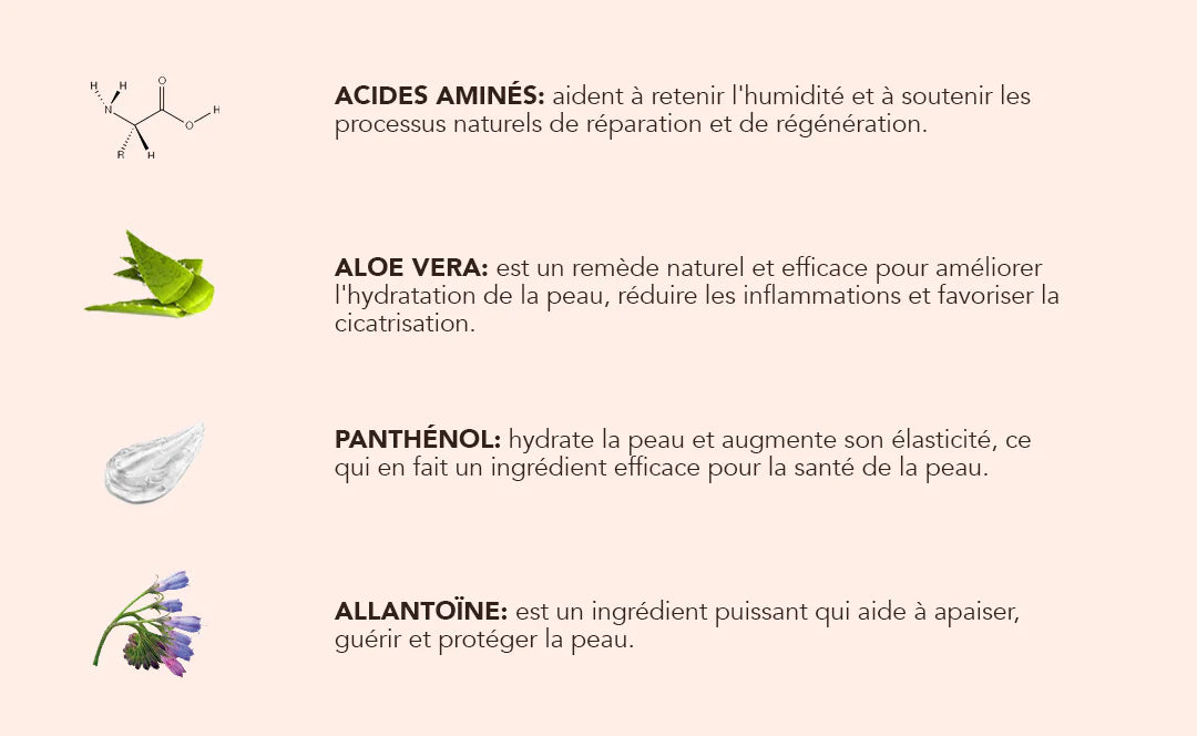 Ingrédients: Aqua, Cocamidopropyl Betaine, Disodium Laureth Sulfosuccinate, Coco Glucoside, Disodium Cocoamphodiacetate, Glycerin, Panthenol, Aloe Barbadensis Leaf Juice, Phenoxyethanol, Allantoin, Ethylhexylglycerin, Sodium PCA, Sodium Lactate, Arginine, Aspartic Acid, PCA, Glycine, Alanine, Serine, Valine, Proline, Threonine, Isoleucine, Histidine, Phenylalanine, Sodium Benzoate, Potassium Sorbate, Tetrasodium EDTA, Citric Acid.