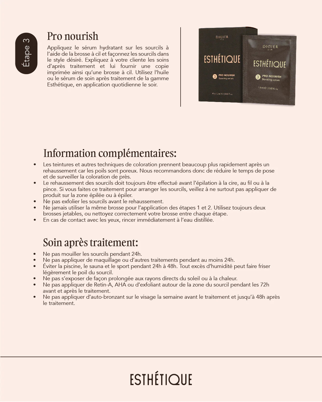 Nourrit et revitalise les cils rehaussés, garantissant qu'ils restent sains, hydratés et bien entretenus après le traitement.