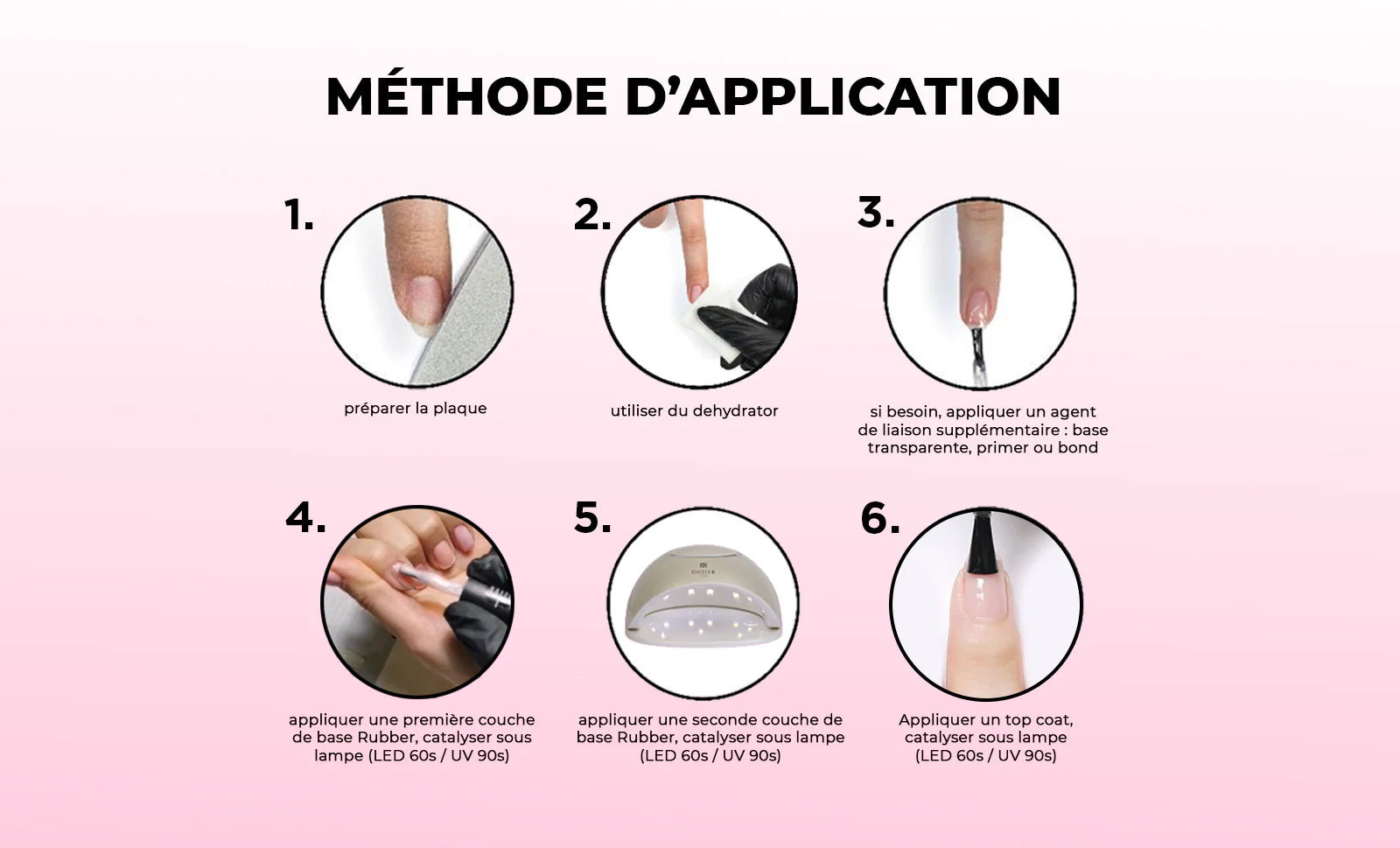 • Préparer l'ongle correctement : effectuer une manucure hygiénique et appliquer si besoin du Acid Primer ou Acid-free Primer Bond Didier Lab (en fonction de l'état des ongles)