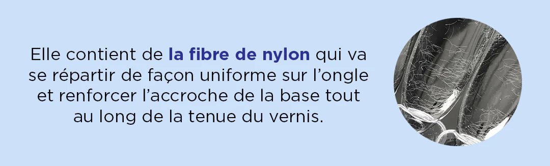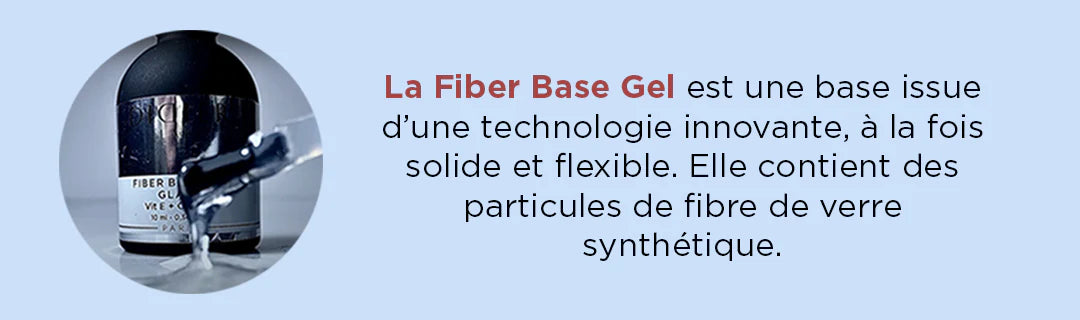 La Fiber Base Gel est une base issue d’une technologie innovante de Super Texture, à la fois solide et flexible, elle contient des particules de fibre de verre synthétique. Cette base intelligente va donc s’accrocher fortement à l’ongle naturel et le renforcer. Elle est également enrichie en fibre de nylon qui vont se répartir de façon homogène et renforcer l’accroche de la base tout au long de la tenue du vernis.