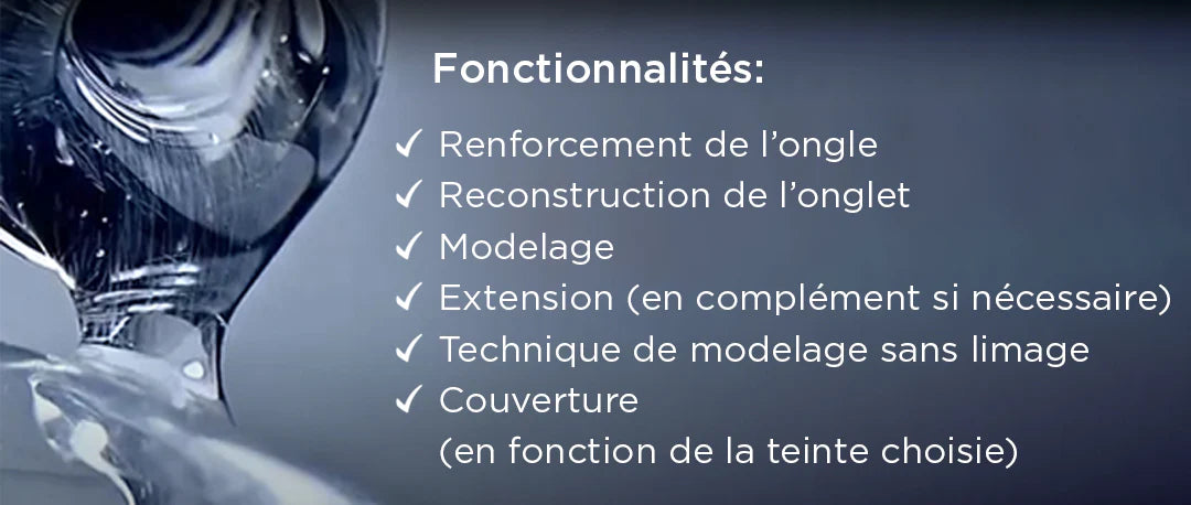 • Renforce l’ongle, maintient sa forme pendant la repousse