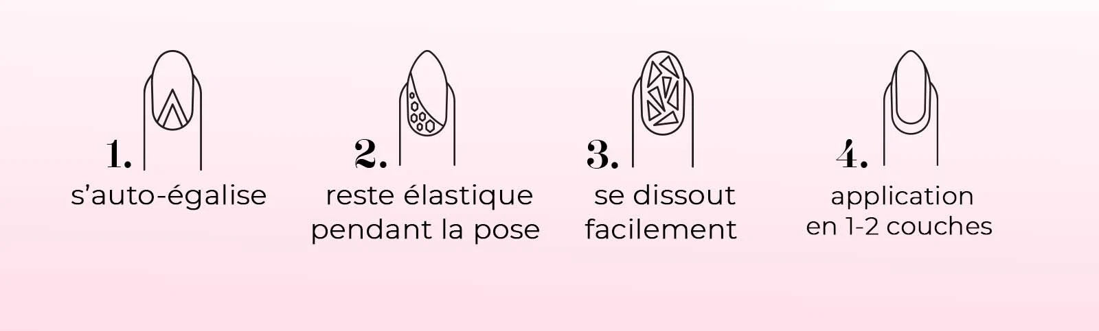 Cette base vous fait gagner du temps et vous permet de faire un travail rapide et efficace ! C'est également un excellent choix pour la manucure French car elle est déjà colorée. Vous pouvez l'appliquer en 1 couche pour obtenir un bel effet translucide ou alors appliquer 2 couches pour obtenir une couverture plus opaque. L'application de couches plus épaisses donne alors une couverture complète de l'ongle.