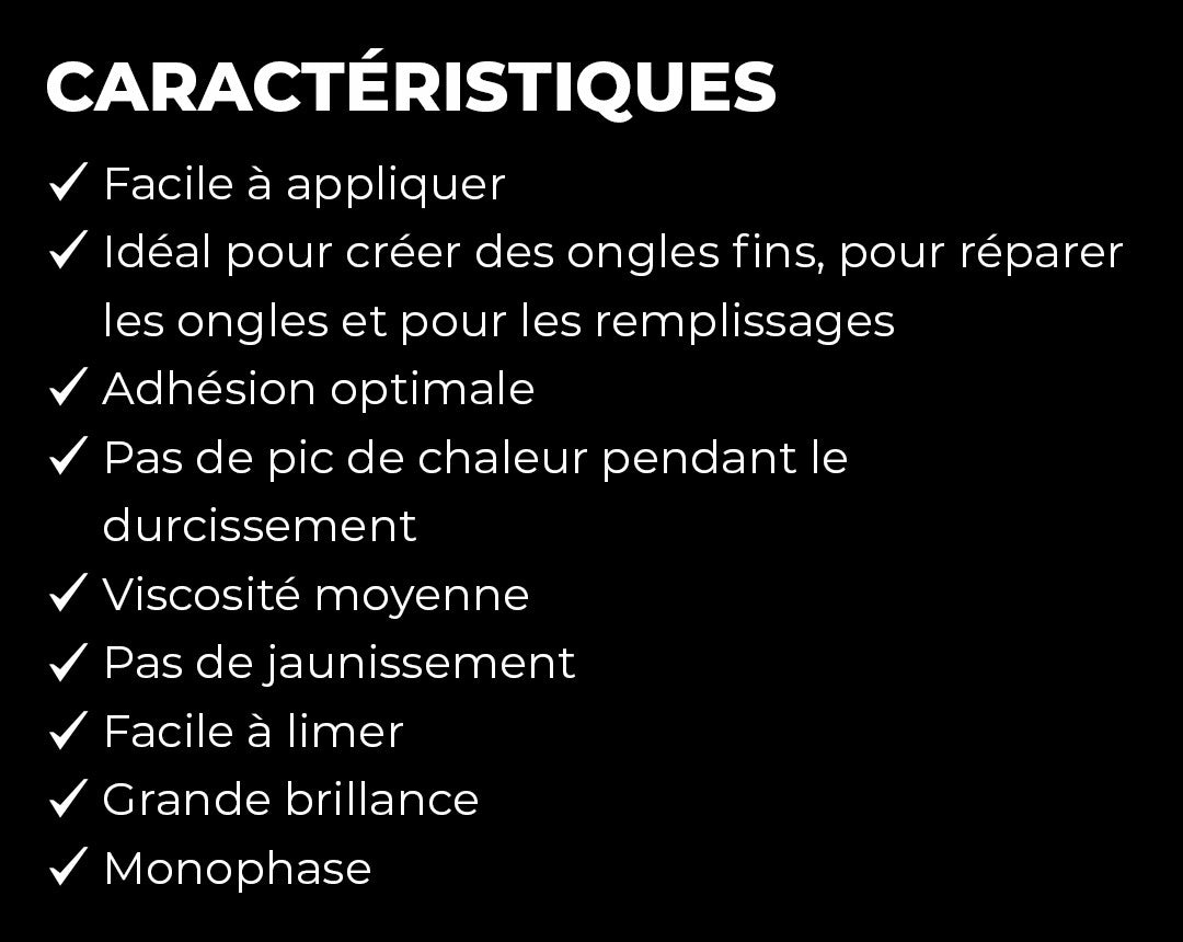 - Idéal pour créer des ongles fins et peu épais, pour réparer les ongles et pour les remplissages ;