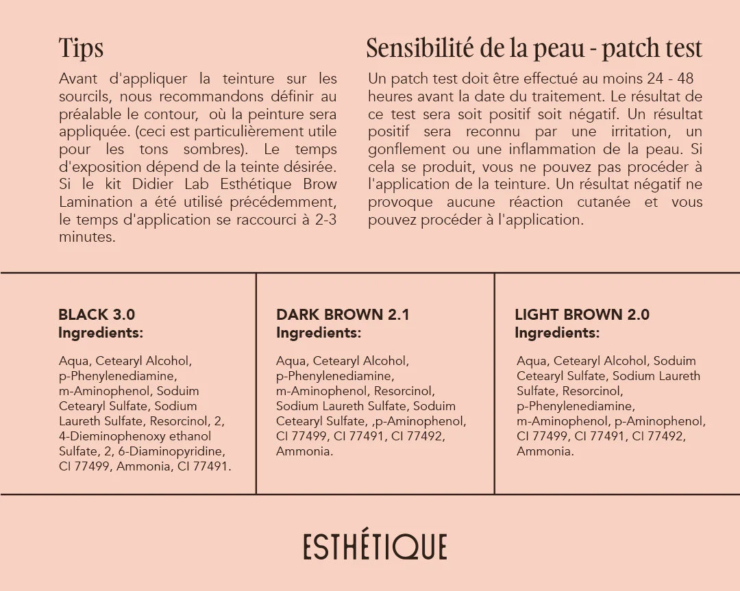 ATTENTION : La teinture pour les cils et sourcils est à mélanger avec l'oxydant ESTHÉTIQUE OXIDANT 3% DIDIER LAB !