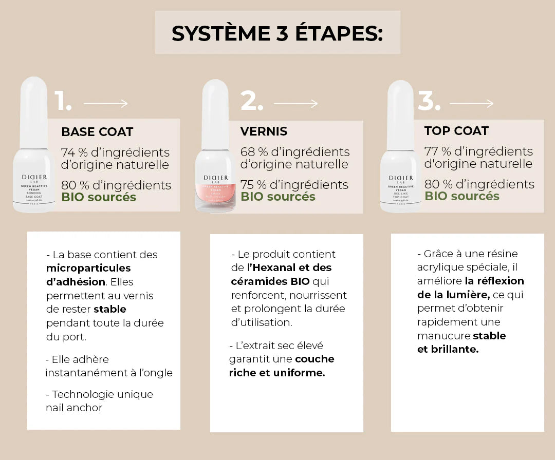 - Terminez avec le top coat Didier Lab Green Reactive Vegan. Laissez sécher quelques minutes.
